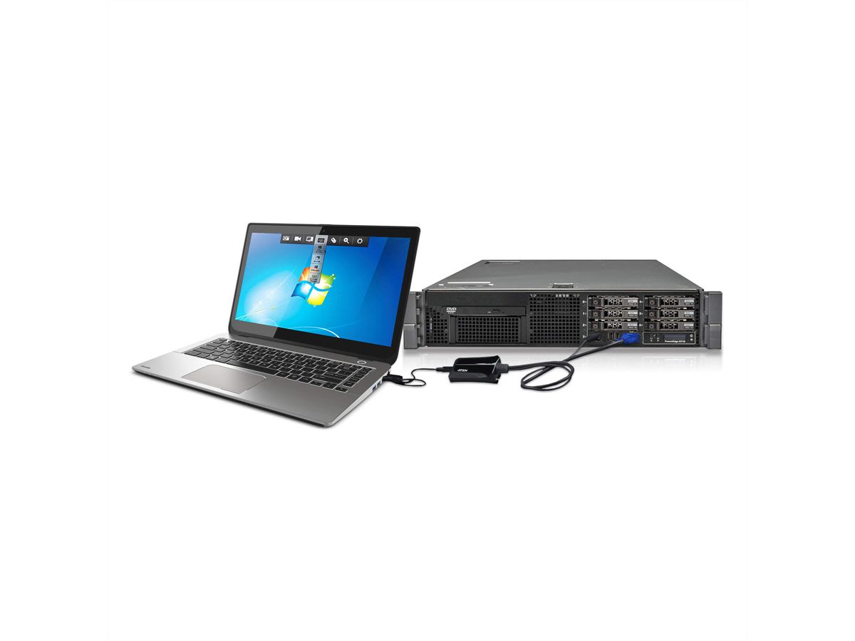 Dieser KVM-Adapter ist ein unverzichtbares Werkzeug für IT- Manager unterwegs. Es transformiert ein Notebook in eine KVM Konsole, um einen schnellen Serverzugriff zu ermöglichen.