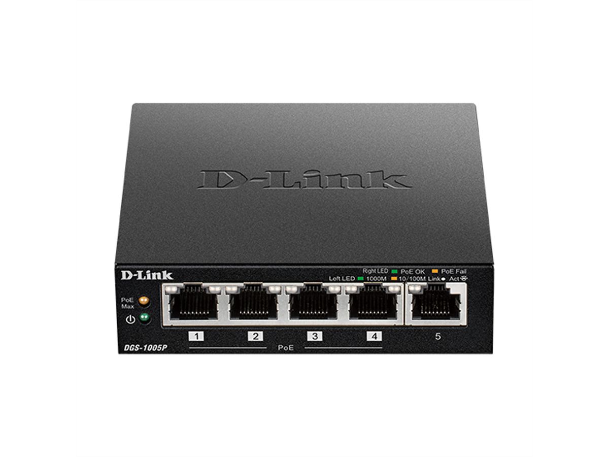 D-Link DGS-1005P/E 5-Port PoE+ Switch Gigabit, 4 PoE+ Ports, 60W