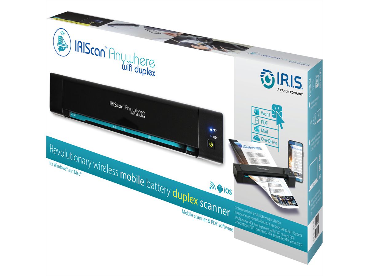 Der IRIScan Anywhere 6 Wifi Duplex ist ein leichter, autonomer, eigenständiger, hochauflösender, mit Lithiumbatterie betriebener tragbarer Farbdokumentenscanner, mit dem Sie Verträge, Lieferscheine, Rechnungen, Quittungen, ärztliche Verschreibungen, Patientenakten, Visitenkarten, Seiten, Briefe und A4-Farbunterlagen beidseitig scannen können.