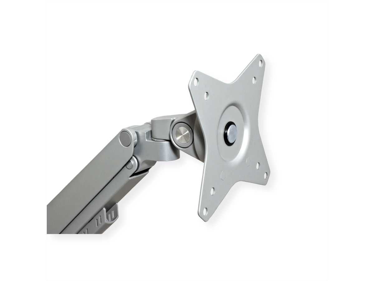 ROLINE LCD-Doppelarm, Tischmontage, Gasfeder, 5 Gelenke, 17-32 Zoll, bis 2x 9 kg, silberfarben