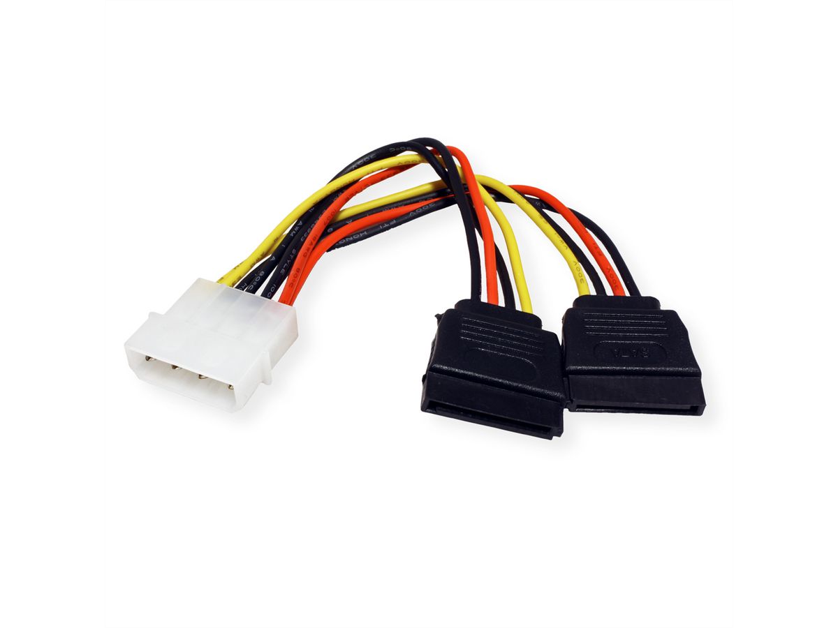 ROLINE Y-Adapterkabel 4 pol. HDD / 2x SATA, 0,12 m