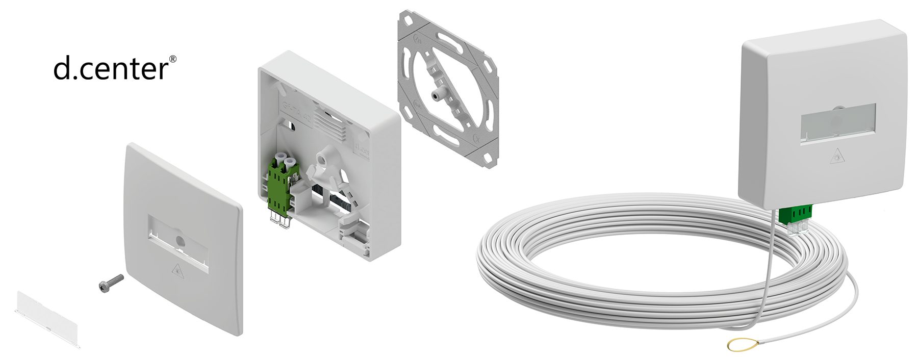 d.center® Gf-TA 42, bestückt mit 1x LCD/APC Kupplung & 2x LC/APC Pigtails, spleißfertig